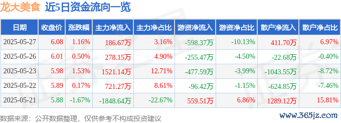 本站消息,截至2025年5月27日收盘线下股票配资,龙大美食(002726)报收于6.08元,上涨1.16%,换手率0.9%,成交量9.74万手,成交额5908.58万元。